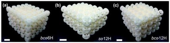 - Yang, H.; Yang, S.; Chi, X.; Evans, J.R.G. Fine ceramic lattices prepared by extrusion freeforming. J. Biomed. Mater. Res. Part B Appl. Biomater. 2006, 79, 116–121. [Google Scholar] [CrossRef] [PubMed]