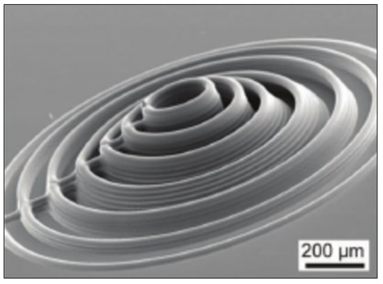 - Fischer, J.; Kniepkamp, M.; Abele, E. Micro laser melting: Analyses of current potentials and restrictions for the additive manufacturing of micro structures. In Proceedings of the 25th Annual International Solid Freeform Fabrication Symposium—An additive Manufacturing Conference, Austin, TX, USA, 4–6 August 2014; pp. 22–35. [Google Scholar]