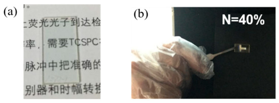 (a) The anti-counterfeiting symbol “T” on the quartz substrate. (b) The bright “T” symbol under 325 nm light irradiation.