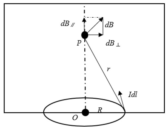 When an alternating current is applied to the coil, Biot–Savart’s law shows that this type of coil can be simplified as the magnetic field of a circular current-carrying wire, and the magnetic field on its axis is shown in Figure 2. When point is located at the center of the circle, the magnetic induction intensity at the center of the coil is the largest, and the distance is the minimum circumference radius , then the value of point is: