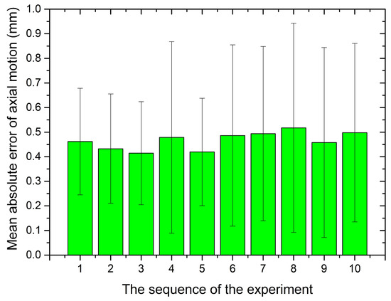 Mean error of ten times experiments for the axial motion.