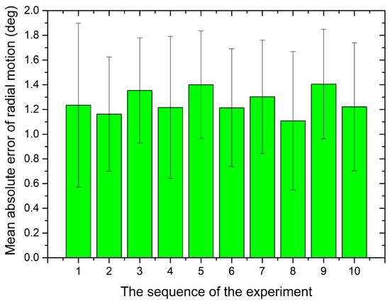 Mean error of ten times experiments for the radial motion.