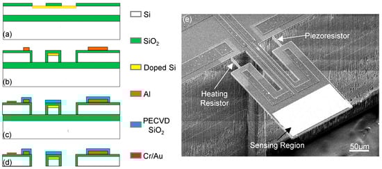 - Yu, H.; Li, X.; Gan, X.; Liu, Y.; Liu, X.; Xu, P.; Li, J.; Liu, M. Resonant-cantilever bio/chemical sensors with an integrated heater for both resonance exciting optimization and sensing repeatability enhancement. J. Micromech. Microeng. 2009, 19, 045023. [Google Scholar] [CrossRef]