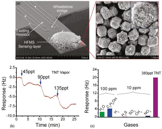 - Yu, H.; Xu, P.; Xia, X.; Lee, D.-W.; Li, X. Micro-/nanocombined gas sensors with functionalized mesoporous thin film self-assembled in batches onto resonant cantilevers. IEEE Trans. Ind. Electron. 2011, 59, 4881–4887. [Google Scholar] [CrossRef]