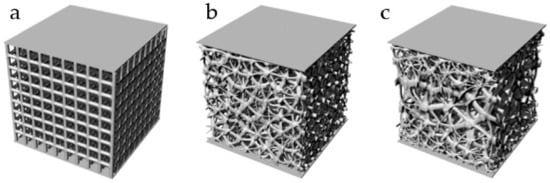 - Wang, X.; Xu, S.; Zhou, S.; Xu, W.; Leary, M.; Choong, P.; Qian, M.; Brandt, M.; Xie, Y.M. Topological Design and Additive Manufacturing of Porous Metals for Bone Scaffolds and Orthopaedic Implants: A Review. Biomaterials 2016, 83, 127–141. [Google Scholar] [CrossRef]