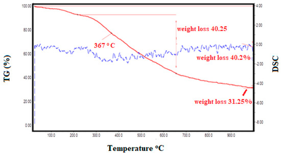 TGA-DSC thermogram of poly(styrene-maleic acid-g-chloro-pyridine) (PSMP1).