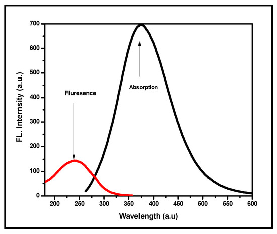The UV-vis absorption spectra of fluorescent pyridine analogues of PSA, PSMP, and PSMP1 samples were recorded using dimethyl formamide (DMF) as solvent due to the higher solubility of the polymers in DMF. The maleamide copolymer exhibited fluorescent properties that caused the florescent emission of the poly (styrene-4-acetyl-maleic acid-arylamide) (PSA) polymer (cf. Figure 9). The maleic acid-acrylamide units of PSA were a type of electron-deficient monomer that usually co-polymerizes with styrene monomers. Herein, the 3-(4-acetylphenylcarbamoyl) acrylic acid was co-polymerized with styrene monomers to prepare polymers that contain maleic acid moieties, and the reactions occurred smoothly using AIBN as a radical initiator. The graft polymer PSMP, graft PSMP, was synthesized by employing poly(styrene-4-acetyl-maleic acid-arylamide) (PSA). The copolymer PSA, maleimide copolymer, had some fluorescent properties, where the poly(styrene-maleimide) (PSA) arylamide units were a kind of electron-deficient polymer system. In the UV absorbance spectra herein, a maxima for the co-polymer was observed at 330 nm (PSA, λmax 330 nm), as shown in Figure 9. The emission spectra showed a λem near 240 nm and the emission spectra of the PSA polymer revealed a blue emission in other solvents such as CHCl3, DMF, and DMSO. The PSA polymer exhibited a broad absorption and emission band at 313–500 nm (λmax (absorbance) = 375 nm).