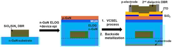 Schematic process route of dual-type VCSEL with ELOG bottom mirror.