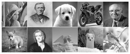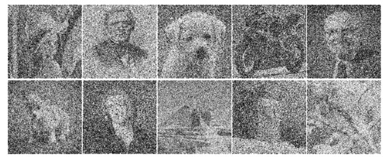 The 10 grayscale images with Gaussian noise at the SNR of −10 dB.