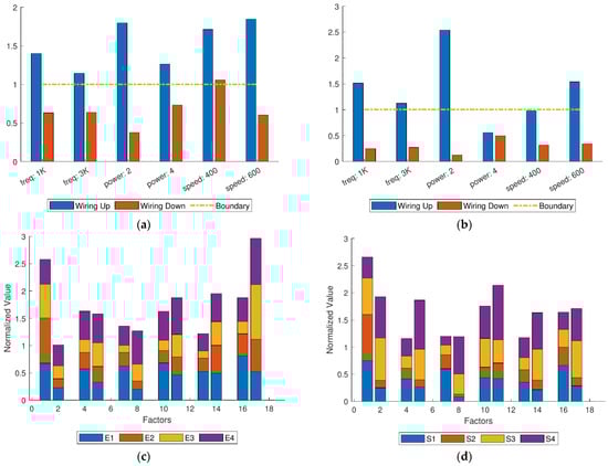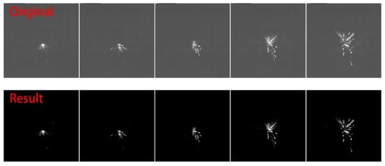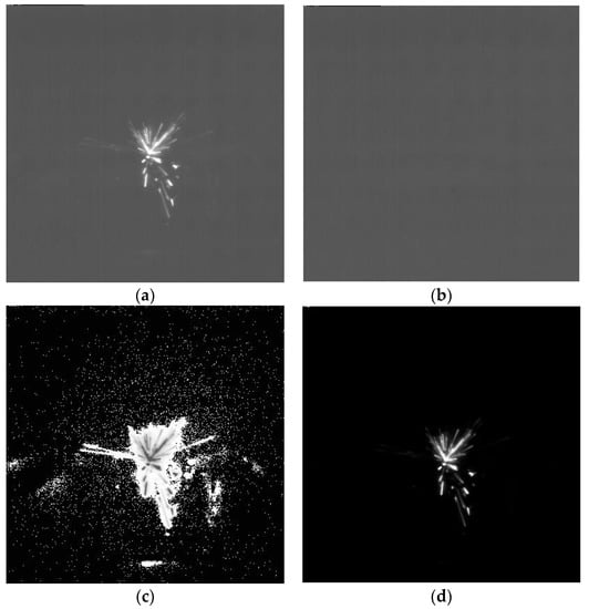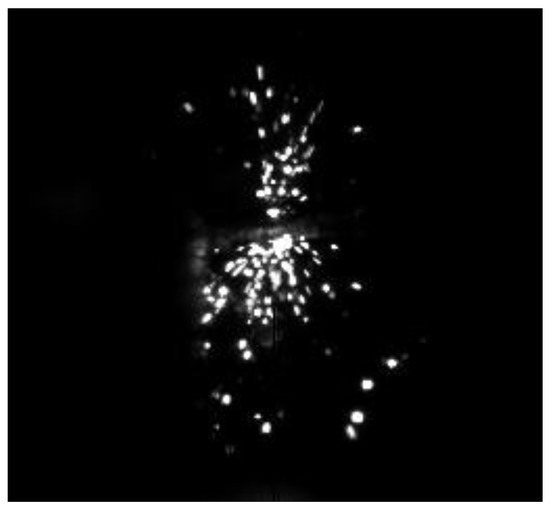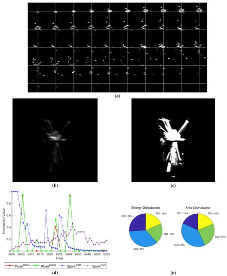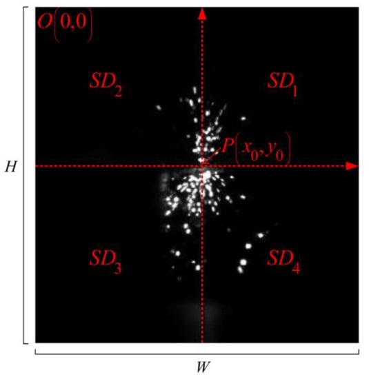 As shown in Figure 2, the spark image is divided into four parts. According to Equation (2), the spark area of each part can be calculated as follows.