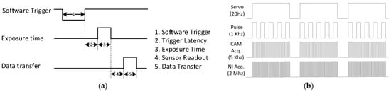 Software trigger timing: (a) camera timing; (b) acquisition and control timing.