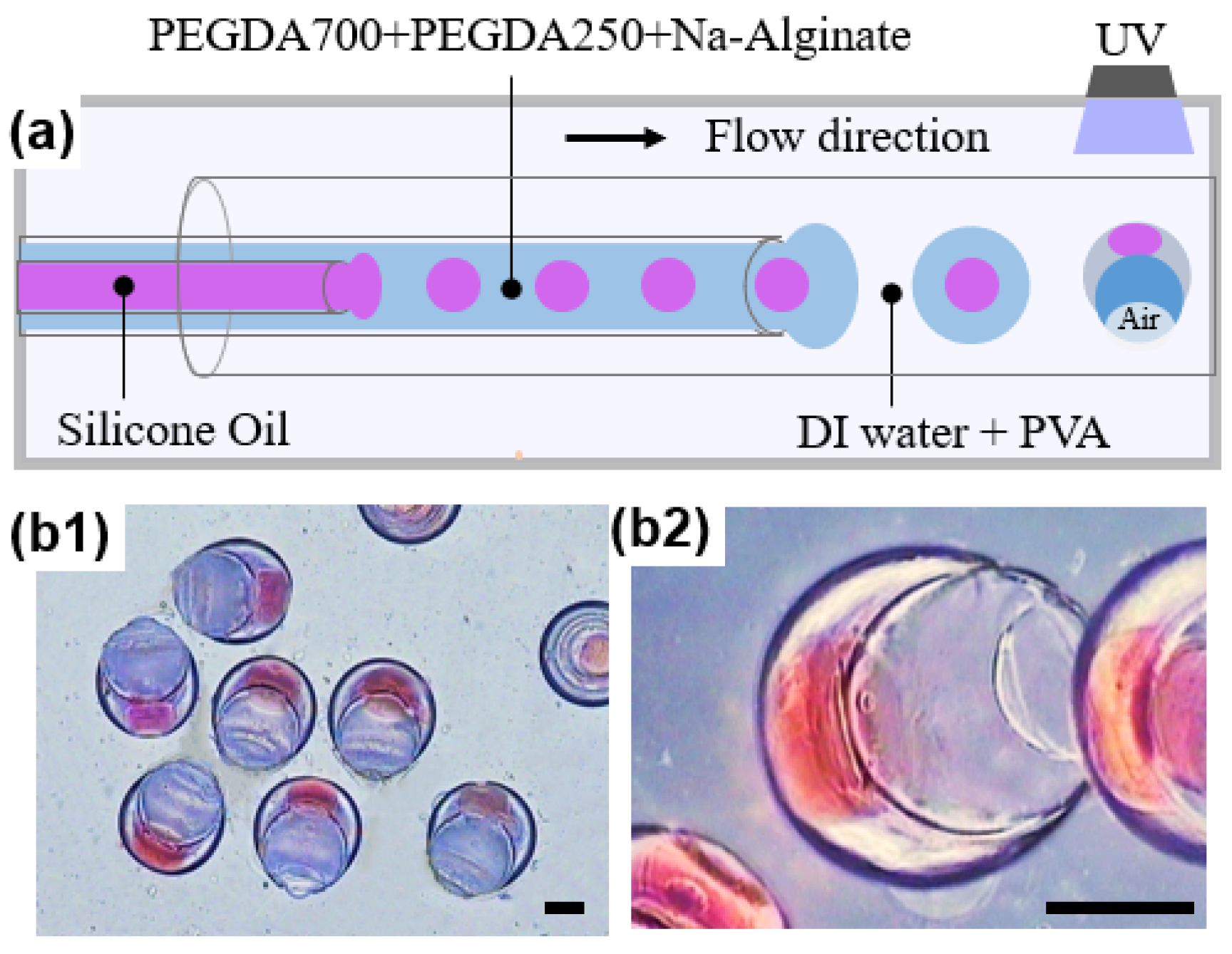 - Lone, S.; Kim, S.H.; Nam, S.W.; Park, S.; Joo, J.; Cheong, I.W. Microfluidic synthesis of Janus particles by UV-directed phase separation. Chem. Commun. 2011, 47, 2634–2636. [Google Scholar] [CrossRef] [PubMed]