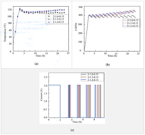 Figure 3. Strategies of achieving stable LCE tendon temperature and contraction. (a) LCE tendon surface temperature versus time using different control strategies. (b) LCE tendon contraction stress versus time using different control strategies. (c) Current versus time control strategies.