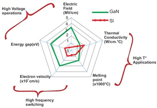 Differences in material properties between GaN and Si [2]. (Data from [2]).