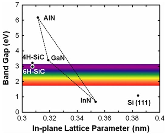 The lattice and thermal mismatch of Si, SiC, Sapphire, AlN, and GaN [46].
