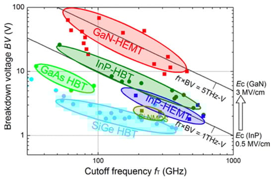 Comparison of breakdown voltage and cut-off frequency among various high-speed device technologies [32]. Figure reproduced with permission from IEEE Trans. Electron Devices.