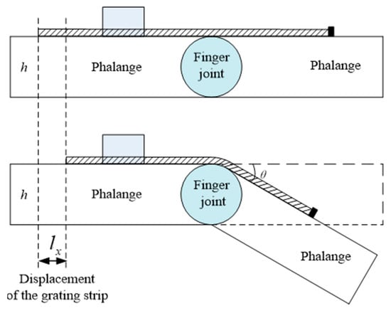 where lx is the displacement at the free end of the grating strip, and h is the finger’s thickness.