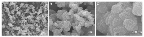 When the CV electrodeposition was performed for one circle (1-CV), the ZnO nanosheets are covered with a thin layer of Ni2S3, but the original shape of the ZnO nanosheet is clearly visible (Figure 8a). Figure 8b presents the surface and edges of these ZnO nanosheets, which are roughened because of the coating of the Ni2S3 nanoparticles. When the electrodeposition reaches 5-CV, as seen in Figure 8c,d, the morphology of these ZnO nanosheets is basically completely covered, and only the edges of these nanosheets, which become wider, due to the coverage of Ni2S3, can be vaguely observed. When the electrodeposition is extended to 10-CV, the nanospheres with a diameter of 1.4–1.8 µm are formed, because of the continuous deposition of Ni2S3, as shown in Figure 8e. The electrodeposition of up to 20-CV results in the disordered accumulation of Ni2S3 particles.