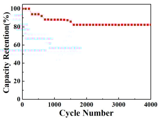 The cyclic stability of the ZnO/Ni2S3 composite electrode is revealed in Figure 11. The specific capacitance is kept at the original value of 88.10% after 1000 cycles, and stabilizes the value at 82.35% within the range of 4000 cycles. After the cycle test, the general structure of the ZnO/Ni2S3 composite remains almost unchanged (Figure S2).