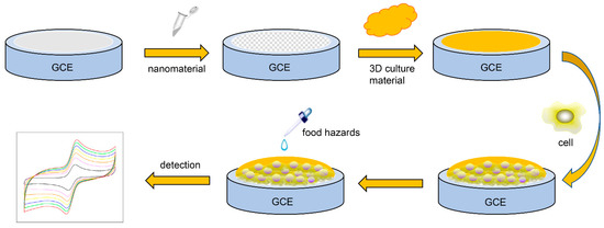 The cells fixed on the electrode surface are the core part of the whole cell sensor, whose status directly determines the performance of the sensor. So far, most of the sensors for food hazard detection have employed traditional two-dimensional (2D) monolayer cell cultures. Although using 2D cell cultures has proven to be a valuable cell research method with a long history, its limitations are increasingly being recognized. Since almost all cells are surrounded by other cells and extracellular matrix in three dimensions in vivo, the natural three-dimensional (3D) environment of cells is not fully considered in 2D cell cultures. Because the monolayer formed in 2D cultures is different from the multilayer formed in 3D cultures, the inhibition of cell-to-cell contact may hinder the original morphological and functional characteristics of cells. Conversely, 3D cell models can simulate cell conditions in vivo because they have 3D scaffolds that support cell growth and cell functions, including morphogenesis, cell metabolism and intercellular interactions [45]. Therefore, 3D cell culture has become an important technology in the construction of cell sensors.