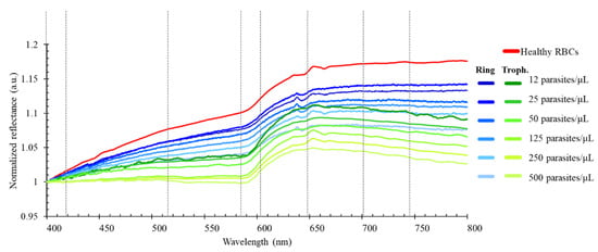 2.1. Optical Reflectance Spectra of Uninfected and Parasite Infected RBCs