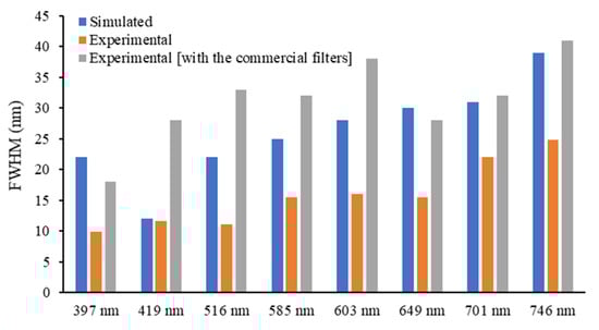 - Costa, M.S.; Baptista, V.; Minas, G.; Veiga, M.I.; Catarino, S.O. Effect of the materials’ properties in the design of high transmittance and low FWHM SiO2/TiO2 thin film optical filters for integration in a malaria diagnostics device. In Proceedings of the 14th International Joint Conference on Biomedical Engineering Systems and Technologies, Biodevices 2021, Vienna, Austria, 11–13 February 2021; Volume 1, pp. 21–31. [Google Scholar] [CrossRef]