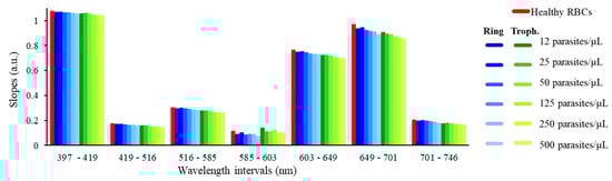 3.2. Discrete Reconstruction of the Samples’ Original Spectra: Application to Malaria Detection