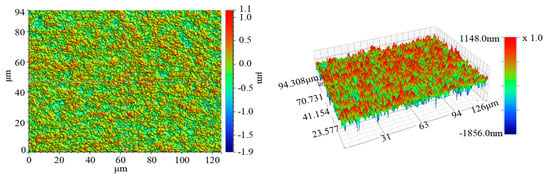 As can be seen from Figure 8, the GRG value first decreased and then increased with the decrease in lapping plate hardness and the increase in lapping normal-pressure and abrasive size. The GRG value first increased and then decreased as the abrasive concentration increased, continued to decrease with the interaction effects of (A × B), continued to increase with the interaction effects of (A × C), and increased and then decreased with the interaction effects of (B × C). The optimum combination of the process parameters obtained from the effect curve analysis under multiple evaluation indexes was A3B1C1D2; that is, when the lapping plate, lapping normal-pressure, abrasive size, and abrasive concentration were a polyurethane pad, 5 kg, 1 μm, and 1.0 wt.%, respectively, we found the most significant GRG value (i.e., the best overall performance of the lapping process). However, this combination was not reflected in the abovementioned experiments.
