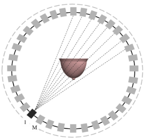 Ultrasound transducer ring arrays composed of elements distributed on the circular at equal intervals are used as the transmitting and receiving devices, as shown in Figure 4.