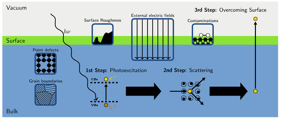 - Gupta, P.; Cultrera, L.; Bazarov, I. Monte Carlo simulations of electron photoemission from cesium antimonide. J. Appl. Phys. 2017, 121, 215702. [Google Scholar] [CrossRef]
