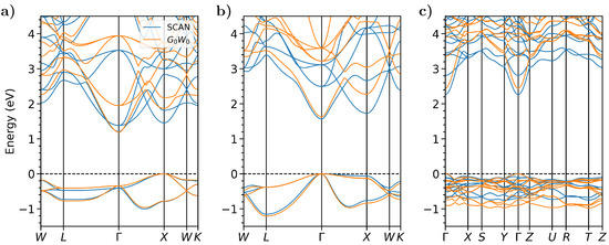 - Hybertsen, M.S.; Louie, S.G. First-principles theory of quasiparticles: Calculation of band gaps in semiconductors and insulators. Phys. Rev. Lett. 1985, 55, 1418. [Google Scholar] [CrossRef]