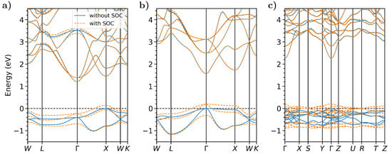 - Huhn, W.P.; Blum, V. One-hundred-three compound band-structure benchmark of post-self-consistent spin-orbit coupling treatments in density functional theory. Phys. Rev. Mater. 2017, 1, 033803. [Google Scholar] [CrossRef]