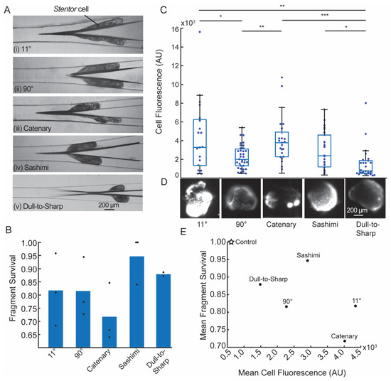 - Zhang, K.S.; Blauch, L.R.; Huang, W.; Marshall, W.F.; Tang, S.K.Y. Microfluidic guillotine reveals multiple timescales and mechanical modes of wound response in Stentor coeruleus. BMC Biol. 2021, 19, 63. [Google Scholar] [CrossRef]