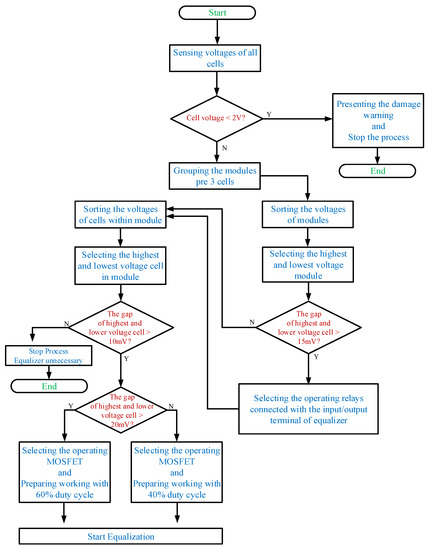 A previous reference has proved that the control program is the most important factor affecting the speed of battery balancing [33]. In addition, the control program can adjust the battery balance state according to various conditions of the battery pack.