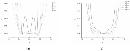 Figure 5a shows the simulation results of the potential energy of the TPEH when and is 7, 11, 13, 15 and 22 mm, respectively. It can be observed that with the decrease in , the potential-energy curve changes from a single potential well to a triple potential well, and the depth of the potential well gradually increases, because the magnetic force gradually increases with the gradual decrease in d.