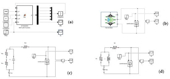 Simulated models in MATLAB/Simulink: (a) nonlinear model (NLM); (b) generic MATLAB model (GMM); (c) RC model (RCM); and (d) RL model (RLM).