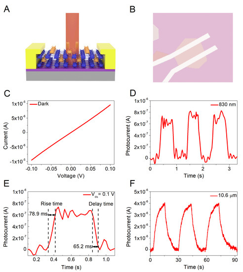 - Yang, T.; Li, X.; Wang, L.; Liu, Y.; Chen, K.; Yang, X.; Liao, L.; Dong, L.; Shan, C.-X. Broadband photodetection of 2D Bi2O2Se–MoSe2 heterostructure. J. Mater. Sci. 2019, 54, 14742–14751. [Google Scholar] [CrossRef]