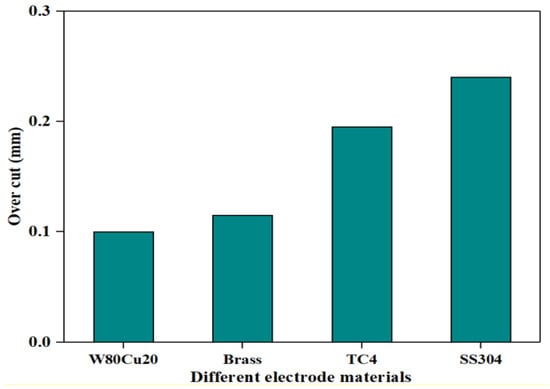 4.1. Comparison of MRR, EWR, and OC by W80Cu20, Brass, TC4, and SS304 Electrodes