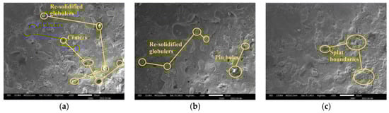 The surface of SS304 alloy machined by different electrodes: (a) W90Cu10; (b) W80Cu20; (c) W70Cu30.