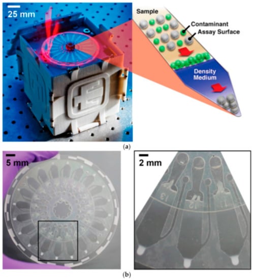 - Tian, F.; Liu, C.; Deng, J.; Han, Z.; Zhang, L.; Chen, Q.; Sun, J. A fully automated centrifugal microfluidic system for sample-to-answer viral nucleic acid testing. Sci. China Ser. B Chem. 2020, 63, 1498–1506. [Google Scholar] [CrossRef] [PubMed]