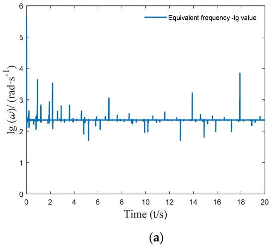 For the two-degree-of-freedom vibration system in Figure 2, the precise integration method [35,36,37,38] was used to solve it, the fine interval was , and the solution time was . Then, each timepoint in 20 s could be used to obtain the time-domain response of the vibration system as follows: