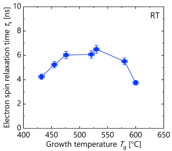 Figure 8. Growth temperature dependence of electron spin relaxation times (τs) measured at RT.