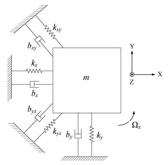 Due to inevitable fabrication errors, the structure of the MEMS gyroscope is not ideal. There is stiffness coupling and damping coupling between the gyroscope drive axis and the sense axis, as shown in Figure 1. The motion equation of the nonideal MEMS gyroscope structure can be expressed as [18]: