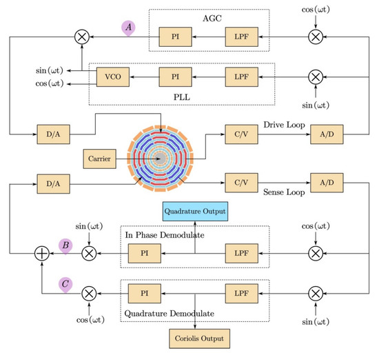 To reduce the quadrature error signal on the final output signal of the gyroscope, researchers have proposed many methods [19,20,21,22,23,24,25] to suppress the quadrature signal, and therefore to reduce the bias.