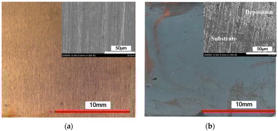 In Section 3.1 and Section 3.2, it has been observed that CPAM in the electrolyte increases the current density and improves the deposition quality. Meanwhile, compared to the other parameters, CPAM with a cationic degree of 20% and a concentration of 20 g/L are suitable parameters for the CPAM–electrolyte. In order to further investigate the effect of current density on the deposition quality, experiments with different current densities were performed with the optimized cationic degree and concentration.