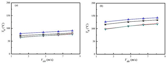 As mentioned above, one of the essential issues in applying TEG technology in utilizing waste heat is the performance of the heat collector. Therefore, it is important to discuss the heat collection efficiency of the present TEG, which is shown in Figure 6. In the present work, no insulation was applied to the heat collector. As a result, a certain amount of heat flux extracted from the heated air by the heat collector was dissipated to the surroundings through natural convections and thermal radiations. Therefore, only part of the heat passed through the TE modules.