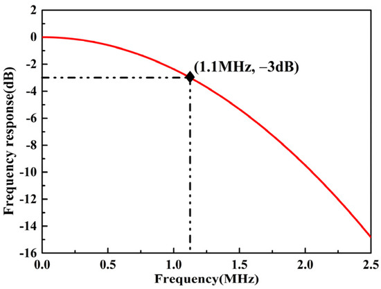 where is an integer, denotes the pressure amplitude at the location of the sensor for each frequency component, is the wavelength of the sound wave, is the beam radius and is the corresponding measured amplitude. Since the beam diameter of the fiber-optic collimator used in the FOAS is , the frequency response curve of the FOAS can be simulated as shown in Figure 4, of which, the −3 dB frequency bandwidth can reach 1.1 MHz. As a result, the frequency response of the FOASs is theoretically independent of the Q factor of the FPE.