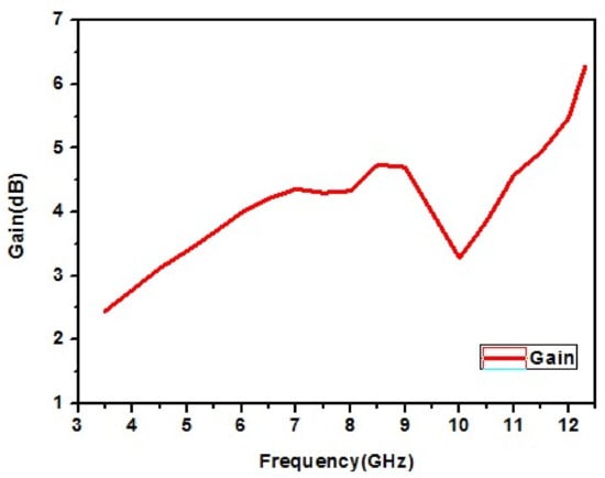 Gain of the designed UWB antenna.