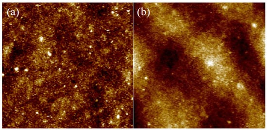 Figure 8 shows the AFM characterization of the TiO2 layer on FTO and stainless steel, respectively. It can be observed that porous TiO2 on FTO has more details and is intensive, while TiO2 on stainless steel is smoother, except for some burrs. The average roughness Ra of the film on FTO is 0.0182 µm, and the average roughness Ra of the film on stainless steel is 0.0403 µm. The height difference of the stainless-steel surface is larger. It can also be seen from Figure 8d that the TiO2 layer on the stainless-steel surface has a large wave shape. Combined with the metallographic microscope diagram, it implies that the fluctuation of the film surface is caused by the texture of the metal surface, which is also the reason for its large maximum roughness.