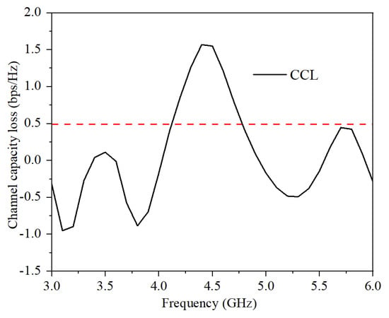 The channel capacity loss (CCL) is calculated from S-parameters using MATLAB in Equations (4) and (5).